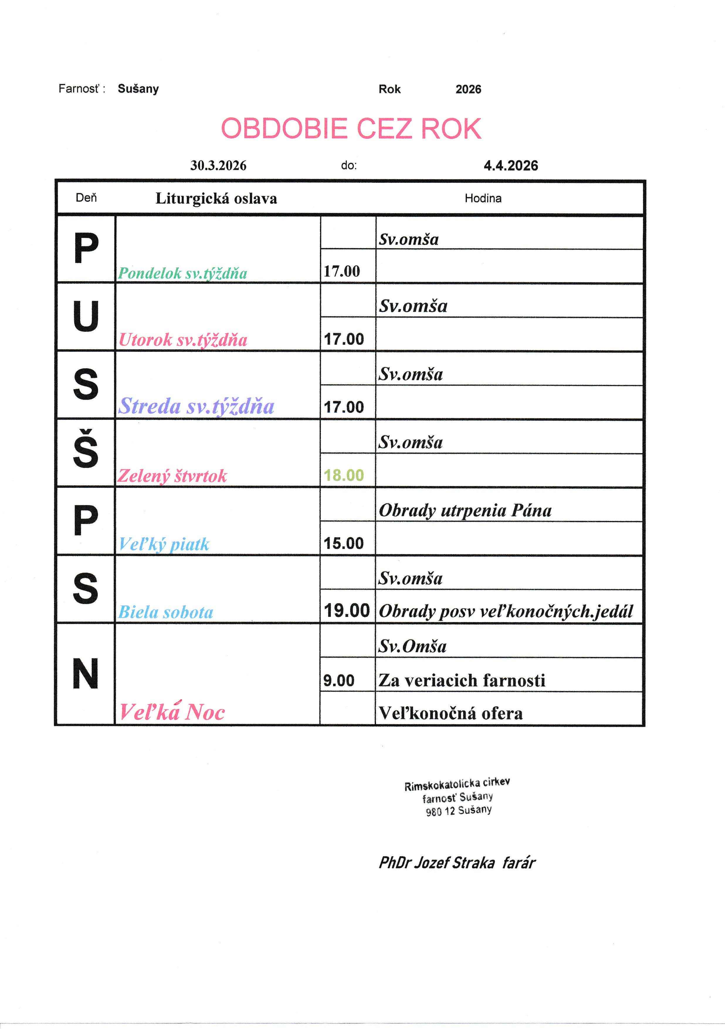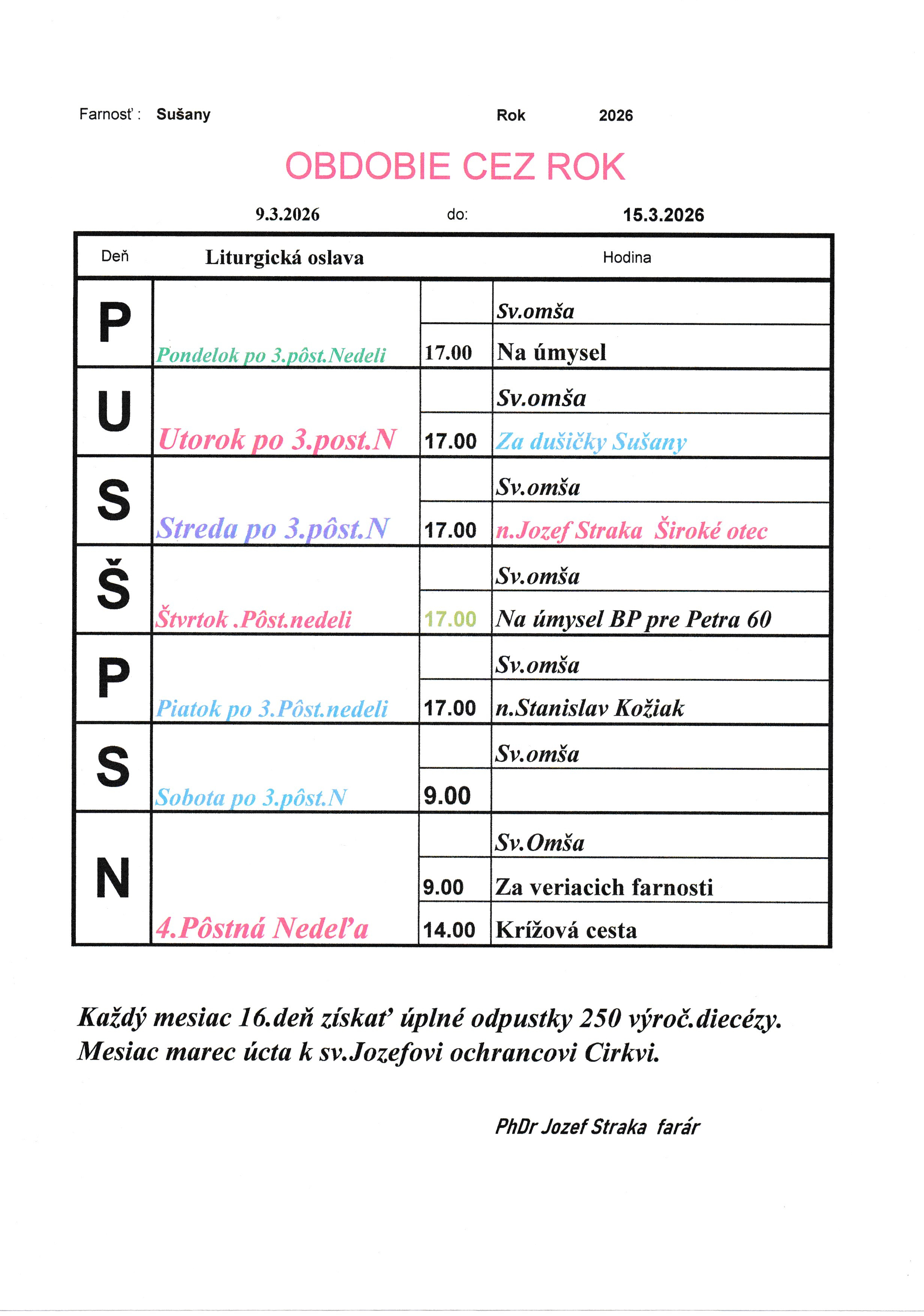 Správca farnosti: PhDr. Jozef Straka