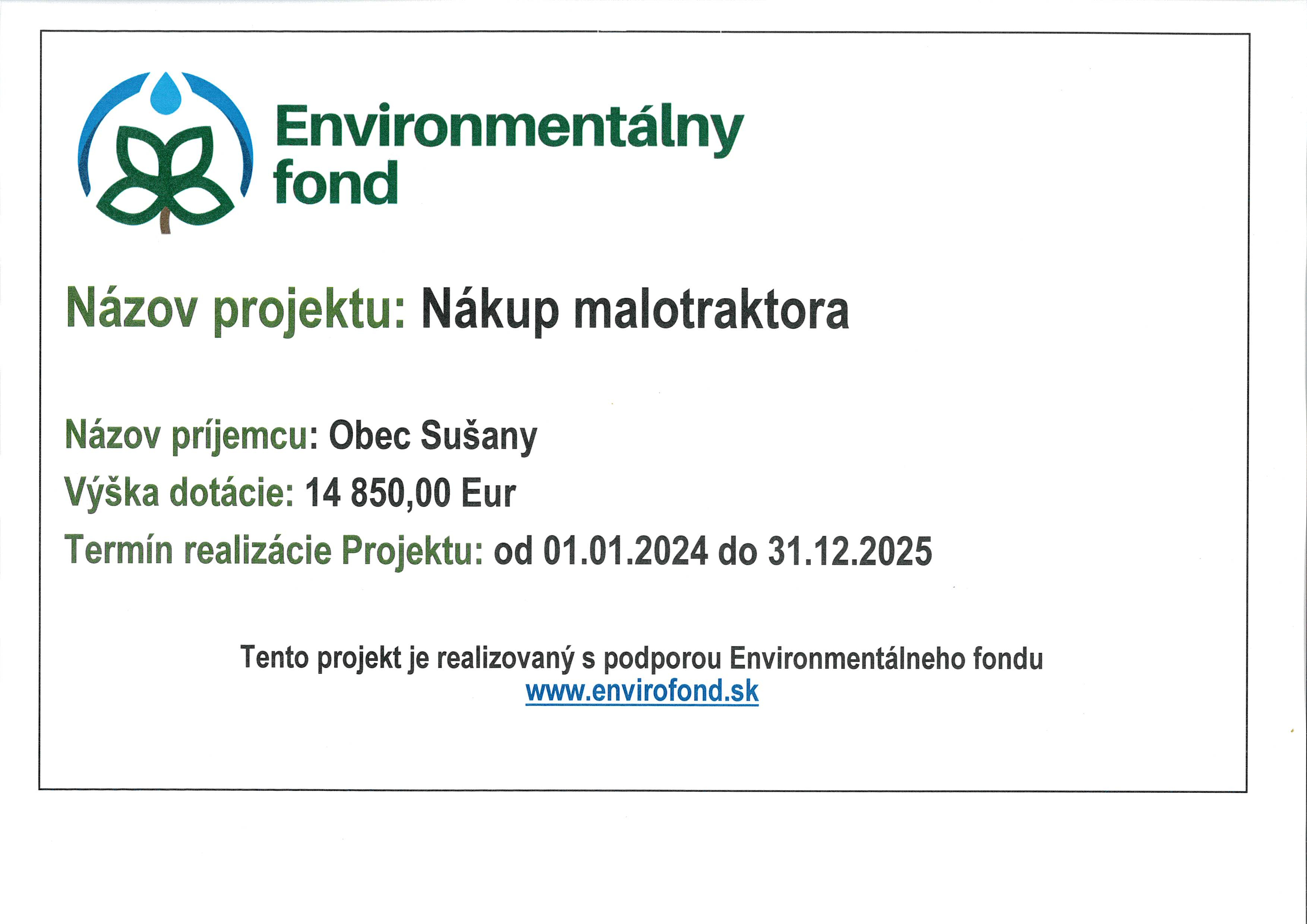 Cieľom projektu je zkvalitnenie, zefektívnenie a zmechanizovanie procesu nakladania s biologicky rozložiteľnými zložkami komunálneho odpadu na území obce Sušany.